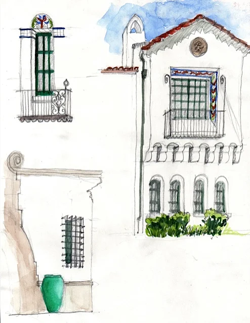 Kids Draw Architecture is a program of the Architectural Foundation of Santa Barbara that Cass Ensberg designed and implemented over 25 years ago. The program is a way for children and young adults to learn about and appreciate the importance of design in the built environment – through sketching the beautiful public buildings and gardens of Santa Barbara. Each spring two free sketch sessions are held each at an important public building where participants are given paper, pencil, a beautiful site, and encouragement to sketch. Drawings are collected, a calendar created, and a year end show and reception held at the Architectural Foundation Gallery. These are some of Cass’ sketches from Kids Draw Sessions over the years.